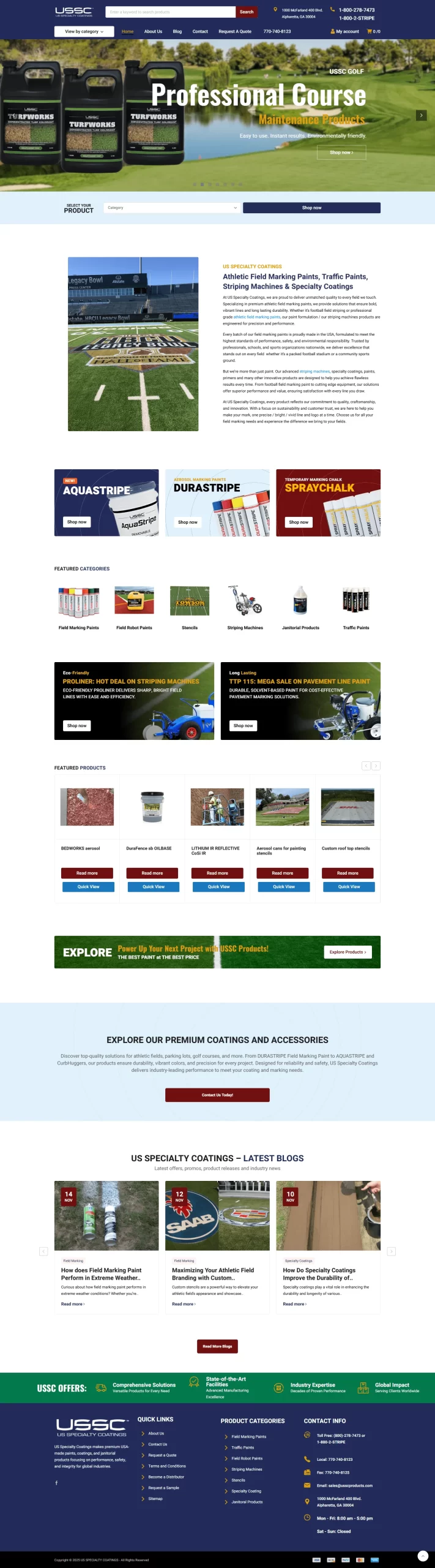 Type of site: : manufacturer of Athletic Field Marking Paints, Paint Striping Machines, Athletic Field Accessories, Traffic Paints, Marking Paints, Industrial Coatings, Protective Coatings, Specialty Custom Coatings, Architectural Paints, Concrete restoration coatings, Asphalt repair products, Janitorial cleaners disinfectants, Floor wax polishes, serving customers all over the world.