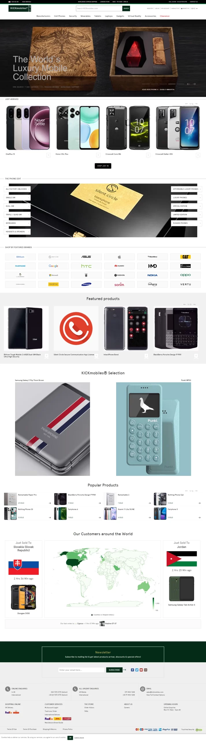 KICKmobiles, an established online retailer of smartphones and encrypted communication devices, was built on the nopCommerce platform but wasn’t utilizing its full potential. The website required a strategic revamp both in functionality and technical performance to support its growing global audience across the USA and UK.