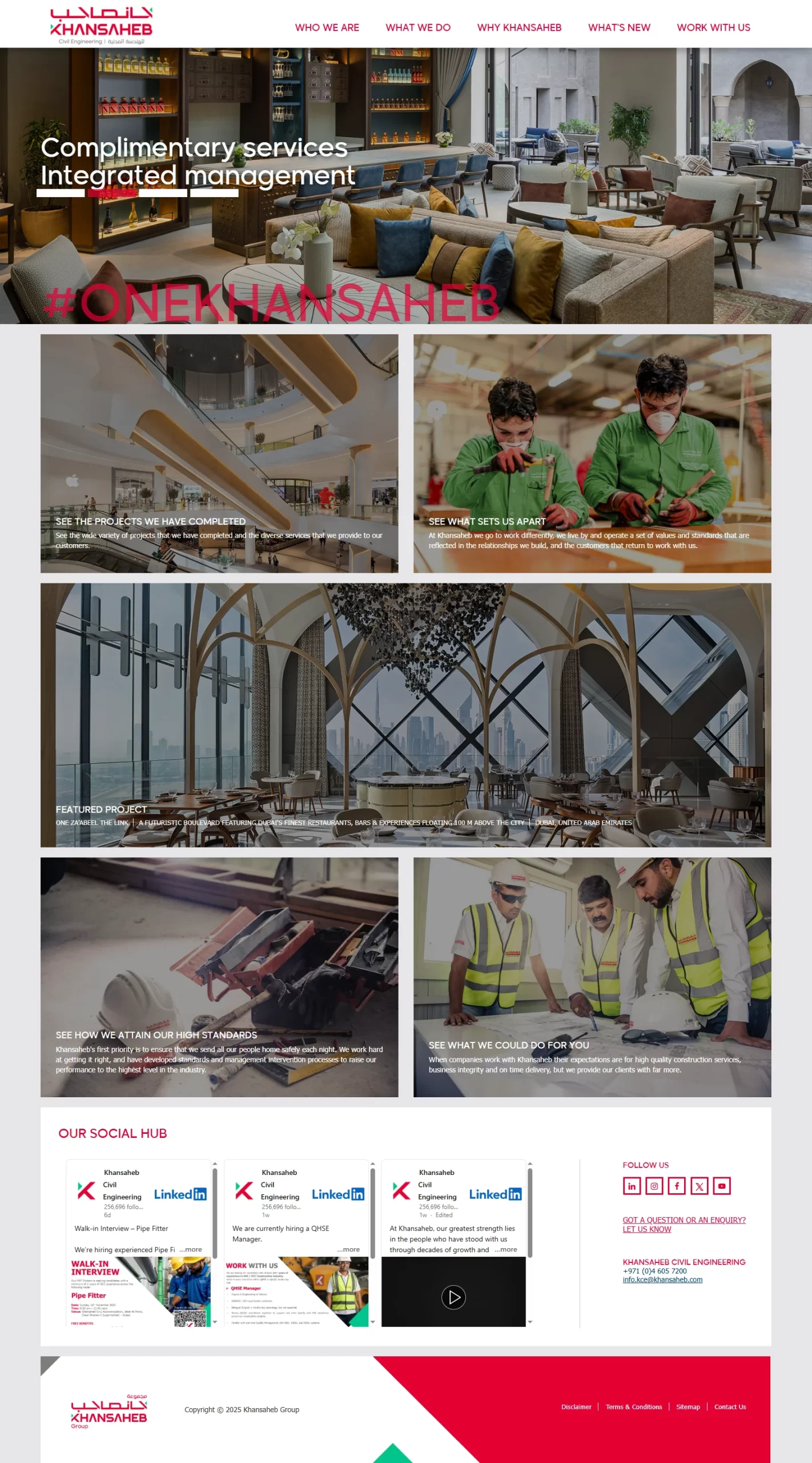 Khansaheb, one of the UAE’s most respected construction and facilities management companies, needed a digital presence that authentically reflected its long-standing legacy, values, and credibility. Built on Kentico CMS, the website had to: