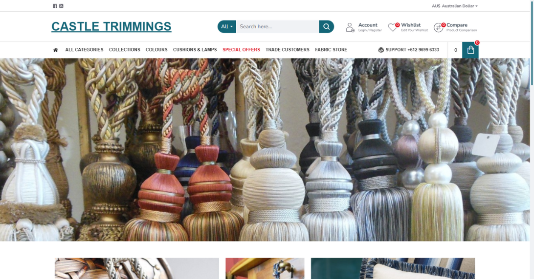 Castle Trimmings is a leading importer and distributor of curtain and sheer tassel tiebacks, rope tiebacks, premium upholstery trimmings, and waterfall string curtains.